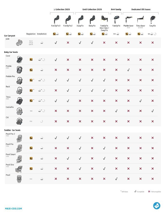 Компания Maxi-Cosi предлагает на выбор достаточно большое количество баз изофикс (isofix), которые предназначаются для разных моделей люлек и автокресел. Не уверены, какая база совместима с автокреслом Maxi-cosi? Или уже приобрели базу и задаетесь вопросом, какое детское сиденье на нее подходит? Взгляните на наш базовый обзор совместимости автокресел Maxi-cosi c isofix платформами, чтобы найти наиболее подходящее для вашего автокресла. Стремитесь к долговечности, повторно используя вашу базу с совместимым автокреслом для малышей, когда ваш ребенок станет старше.